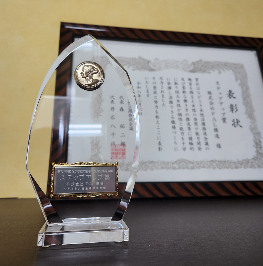2月6日(金)に開催された「第11回ながさき女性活躍推進企業等表彰」において、今年新設された「ステップアップ賞」を受賞いたしました。